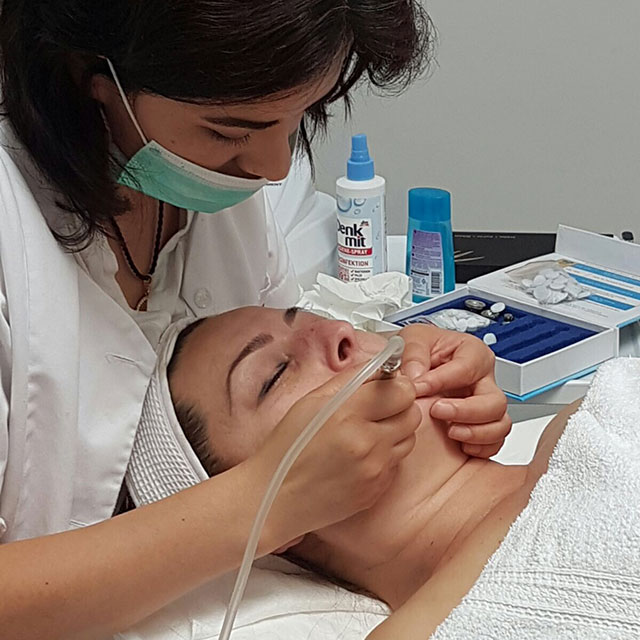 Bei der Microdermabrasion handelt es sich um eine nicht operative Methode die mithilfe eines Geräts die oberste Schicht der Haut mit Hilfe von Kristallen abgeschliffen wird und dann mittels eines Vakuums direkt abgesaugt. Dies macht es möglich, dass sich neue Hautschichten bilden können. Durch die Behandlung werden Falten, Akne Narben, Narben, Dehnungsstreifen und vieles mehr auf der Haut vermindert.